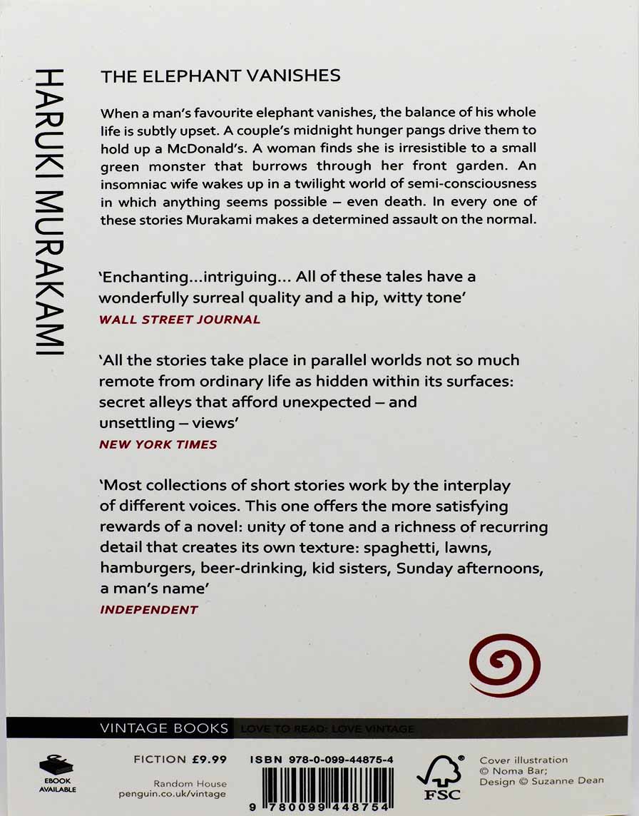 Read MoreA dizzying short story collection that displays Murakami's genius for uncovering the surreal in the everyday, the extraordinary within the ordinary *Featuring the story `Barn Burning', the inspiration behind the Palme d'Or nominated film Burning* When a man's favourite elephant vanishes, the balance of his whole life is subtly upset. A couple's midnight hunger pangs drive them to hold up a McDonald's. A woman finds she is irresistible to a small green monster that burrows through her front garden. An insomniac wife wakes up in a twilight world of semi-consciousness in which anything seems possible - even death. In every one of these stories Murakami makes a determined assault on the normal.