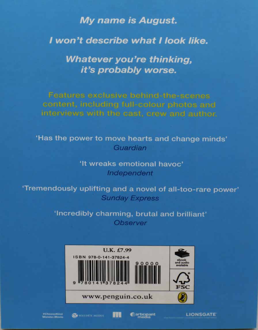 Read MoreRead the internationally bestselling book before you watch the major movie from Lionsgate, starring Julia Roberts and Owen Wilson. This special edition is complete with exclusive behind-the-scenes content. The unforgettable and life-affirming story of August Pullman - a boy who's desperate to blend in, but is destined to stand out. 'My name is August. I won't describe what I look like. Whatever you're thinking, it's probably worse.' Auggie wants to be an ordinary ten-year-old. He does ordinary things - eating ice cream, playing on his Xbox. He feels ordinary - inside. But ordinary kids don't make other ordinary kids run away screaming in playgrounds. Ordinary kids aren't stared at wherever they go. Born with a terrible facial abnormality, Auggie has been home-schooled by his parents his whole life. Now, for the first time, he's being sent to a real school. All he wants is to be accepted. But can he convince his new classmates that he's just like them, underneath it all? Astonishingly powerful, WONDER is a read you'll never forget.