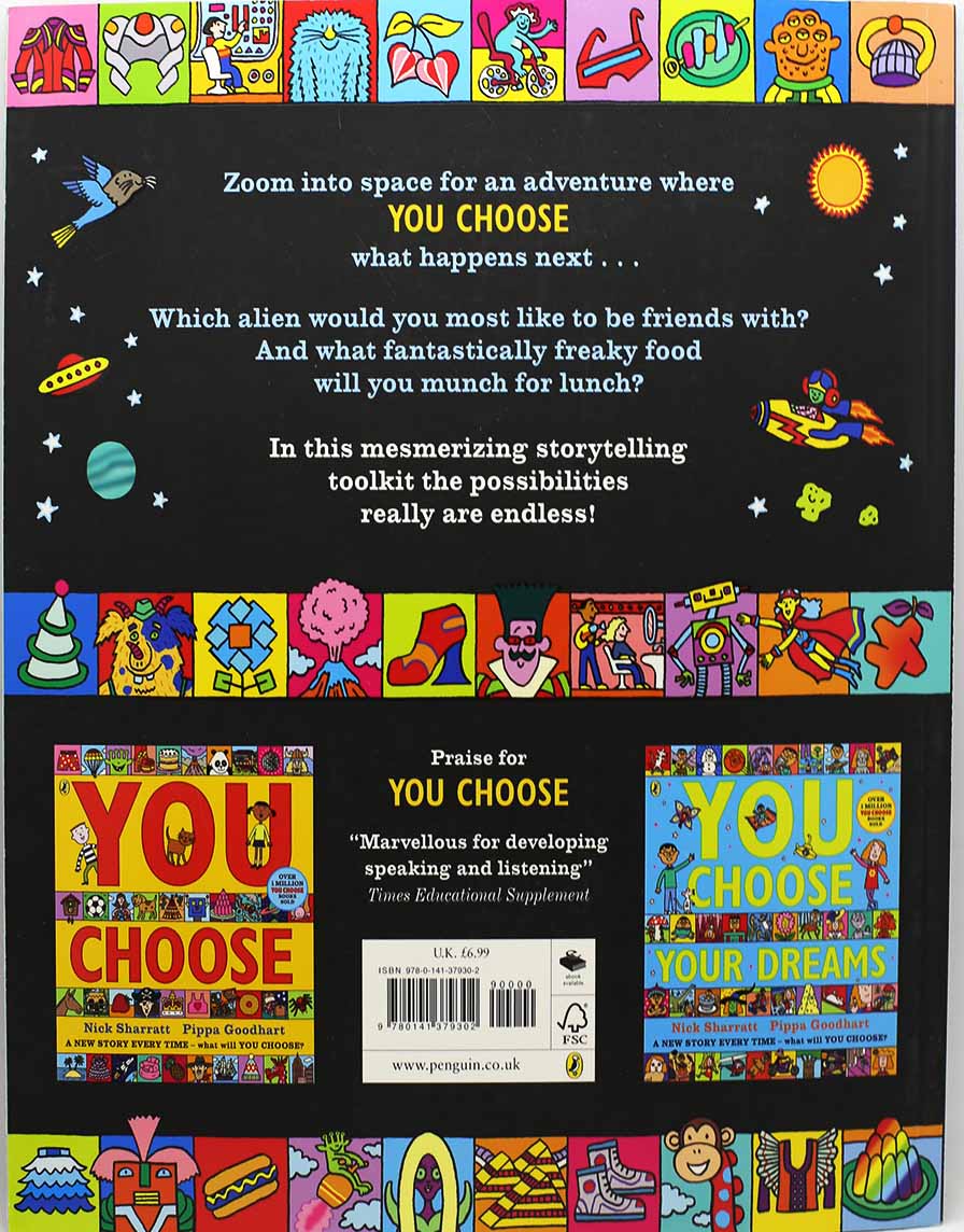 Zoom off into space for an adventure where YOU CHOOSE what happens next. Which alien would you most like to be friends with? And what fantastically freaky food will you decide to munch for lunch? The possibilities are infinite in this mesmerising creative toolkit which will inspire children from 3 up to make their own stories time and again - a spectacular sequel to the bestselling You Choose - it's out of this world!