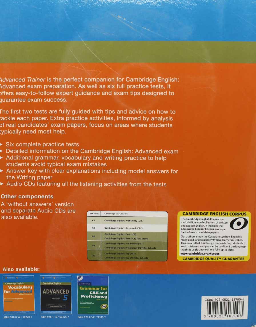 Six full practice tests plus easy-to-follow expert guidance and exam tips designed to guarantee exam success. The syllabus for this exam has changed and this book has now been replaced by 9781107470279 Advanced Trainer Second edition Six Practice Tests with answers with Audio.