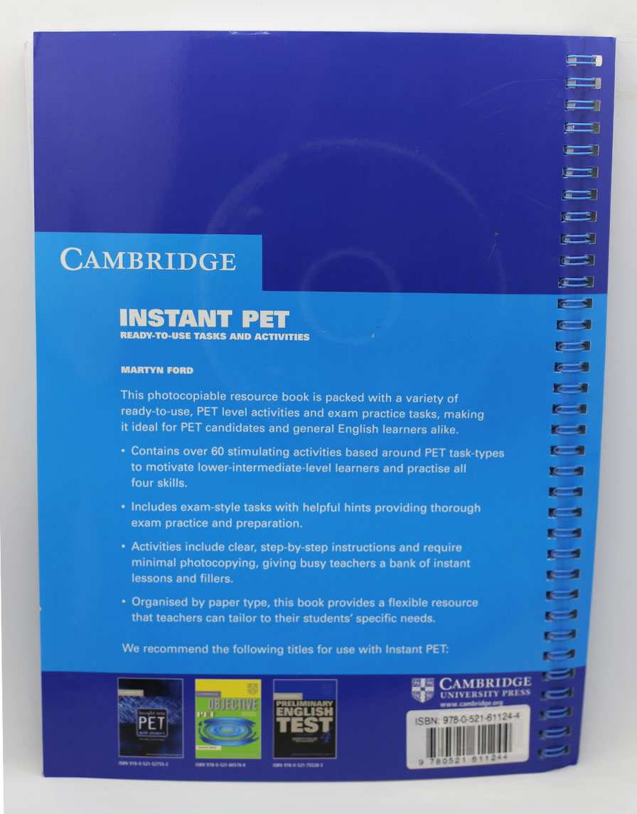 A photocopiable resource packed with a variety of ready-to-use PET-level activities and exam practice tasks with tips, making it ideal for PET candidates and general English learners alike. The book is organised by paper type, giving teachers a flexible resource that they can tailor to their students' specific needs.