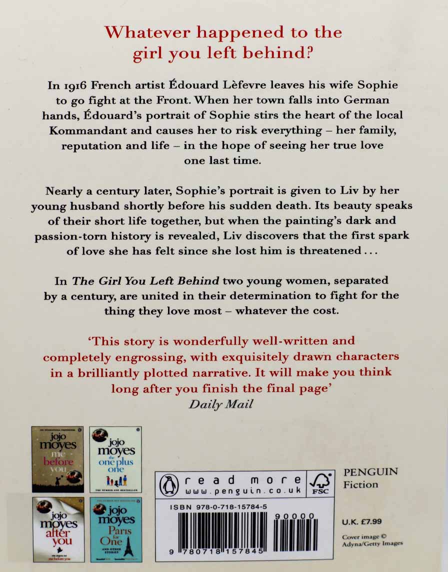 Read MoreWhat happened to the girl you left behind? France, 1916. Sophie Lefevre must keep her family safe whilst her adored husband Edouard fights at the front. But when she is ordered to serve the German officers who descend on her hotel each evening, her home becomes a place of fierce tensions. And from the moment the new Kommandant sets eyes on Sophie's portrait - painted by Edouard - a dangerous obsession is born, which will lead Sophie to make a dark and terrible decision . . . Almost a century later, and Sophie's portrait hangs in the home of Liv Halston, a wedding gift from her young husband before he died. A chance encounter reveals the painting's true worth, and its troubled history. A history that is about to resurface and turn Liv's life upside down all over again . . . In The Girl You Left Behind two young women, separated by a century, are united in their determination to fight for what they love most - whatever the cost.