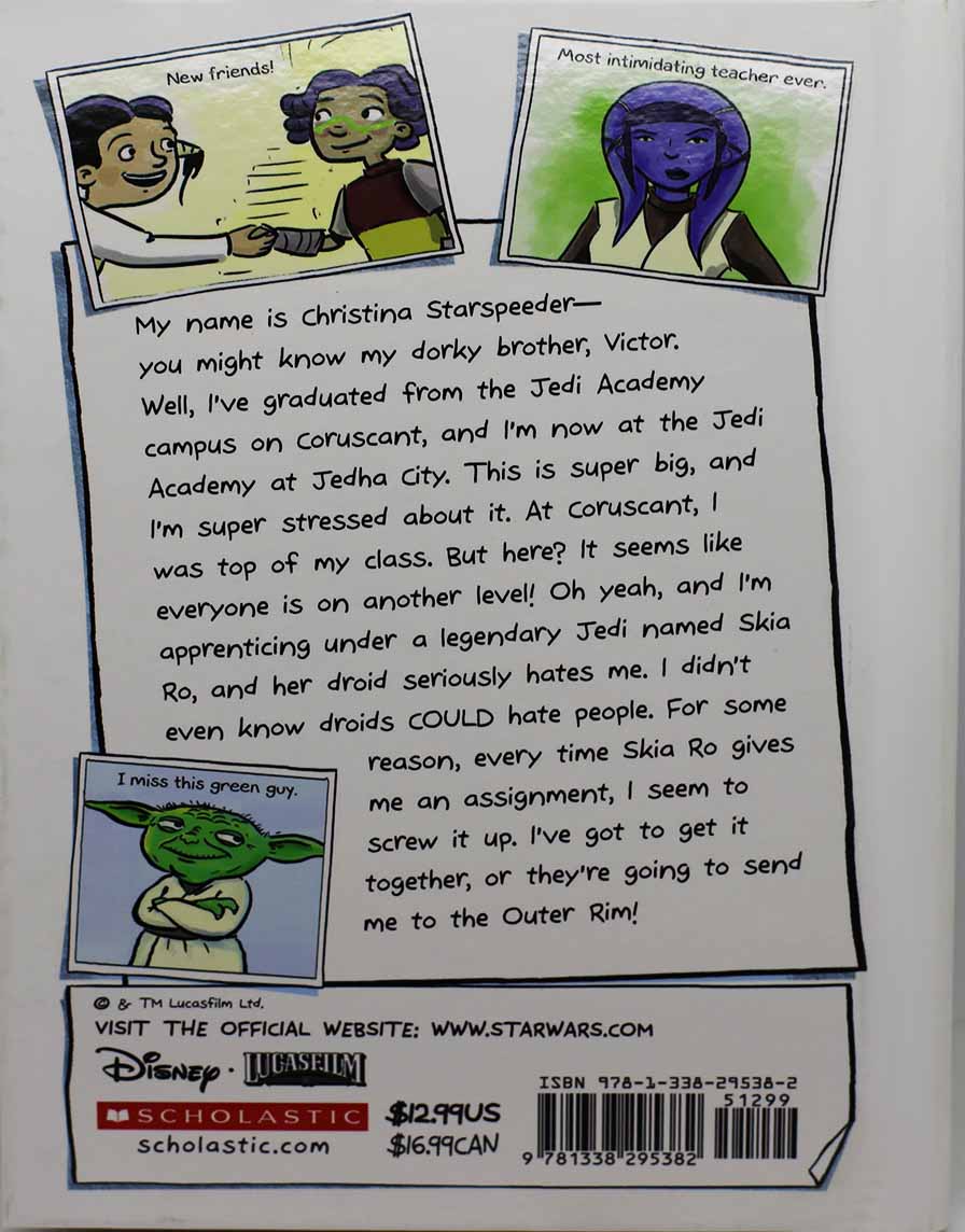 An all-new story arc begins in the New York Times bestselling series, with author Amy Ignatow and illustrator Jarrett Krosoczka in Star Wars: Jedi Academy! Starring Christina Starspeeder! Christina Starspeeder, legendary Padawan and sister to Victor Starspeeder, has graduated from the Jedi Academy at Coruscant. But that doesn't mean her education is over! Just the opposite. Now Christina is a student at the advanced Jedi Academy at Jedha City. It's super big, and super stressful. At Coruscant, Christina was top of her class. But at this new school, it seems like everyone is on a different level. To make matters worse, she's apprenticing under legendary Jedi Skia Ro, whose droid seems to have it out for Christina. Since when did droids come preprogrammed with attitude? Every time Skia Ro gives Christina a task, she manages to screw it up. Can Christina step it up at this new school? Or will she get booted out to the outer rim? Find out in this all-new volume of the New York Times bestselling series Star Wars: Jedi Academy!