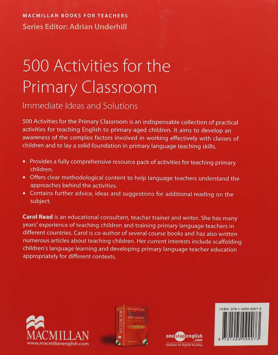 "500 Activities for the Primary Classroom" is the answer to that perennial question of "What on earth am I going to do with my class tomorrow?" Aimed at teachers of children between the ages of 3-12, this is a lively, varied compendium of ideas and classroom activities. Key features include: wide-ranging resource of activities which are easy to set up and do not require a lot of additional materials; and up-to-date approach that covers current approaches in teaching children including content-based learning. It is ideal for all primary-focused teachers, including those on teacher training courses such as the Cambridge CELTYL. It is designed to be flexible to supplement a wide range of syllabus-types (story-based, grammatical, etc.).