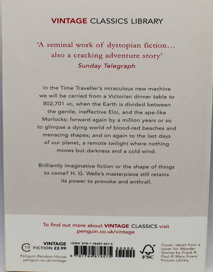 Read MoreIn the Time Traveller's miraculous new machine, we will be carried from a Victorian dinner table to 802,701 AD, when the Earth is divided between the gentle, ineffective Eloi, and the ape-like Morlocks; forward again by a million years or so to glimpse a dying world of blood-red beaches and menacing shapes; and on again to the last days of our planet, a remote twilight where nothing moves but darkness and a cold wind. Brilliantly imaginative fiction or the shape of things to come? H.G. Well's masterpiece still retains its power to provoke and enthral.
