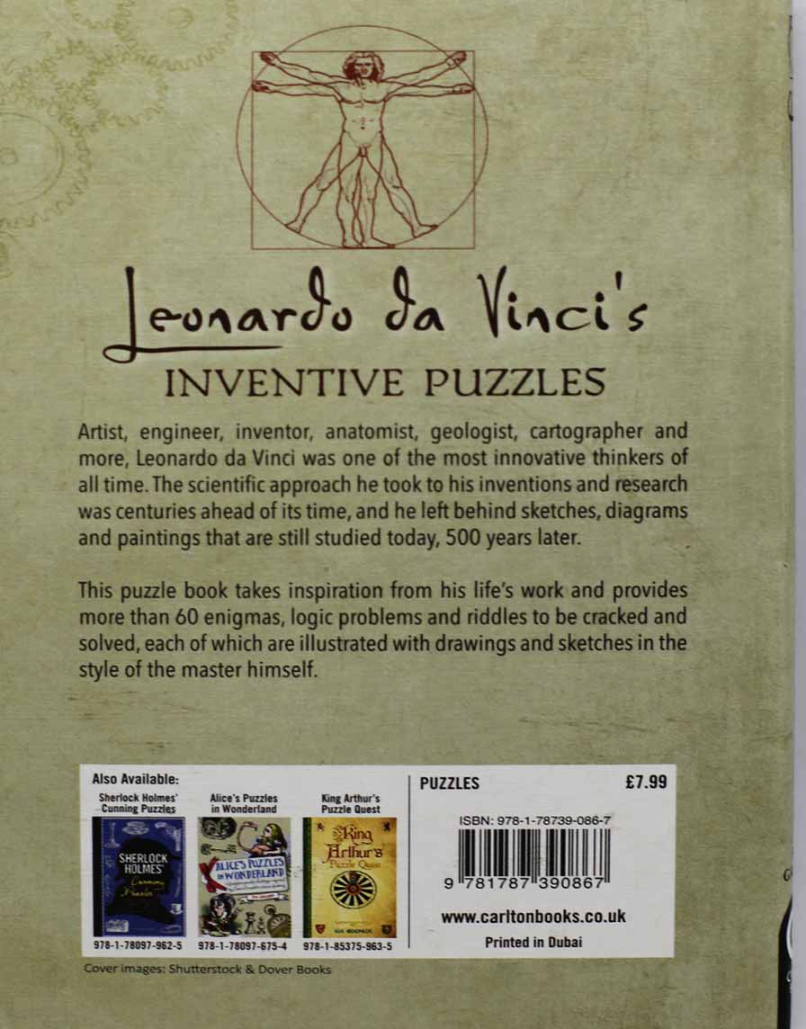 Da Vinci was a man who lived ahead of his time. From beautiful frescos, sculptures and artworks, he also invented flying machines, diving bells, and even renaissance versions of tanks and robotic automatons. His personal life was shrouded in mystery and many of his works are reputed to hold all sorts of secrets in the form of codes and puzzles. Delve into the mind of this great man in Leonardo da Vinci's Inventive Puzzles - over 80 different puzzles inspired and in the style of Leonardo Da Vinci and his works. Full of riddles, codebreaking, enigmas, and logic challenges, this puzzle book is only for the most astute of quizzers.