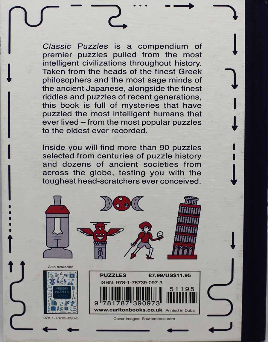 Classic Puzzles: From Ancient Egypt to the Modern Era is a compendium of premier puzzles pulled from the most intelligent civilisations throughout history. Taken from the heads of the finest Greek philosophers and the most sage minds of the ancient Japanese, alongside the finest riddles and puzzles of our own generations, this book is full of mysteries that have puzzled the most intelligent humans that ever lived - from the most popular puzzles to the oldest ever recorded.