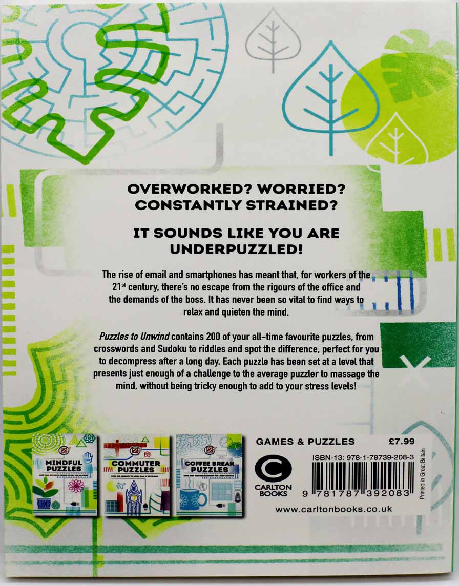 When you need to unwind, the last thing you want is to have to wrap your head around an intricate new puzzle type. Overworked and Underpuzzled: Puzzles to Unwind is the puzzle book for you. With 200 all-time favourite puzzles, you'll have all the fun of puzzling, and still be able to decompress after a long day. Conundrum favourites included inside are crosswords, logic grids, jig words, Sudoku, spot the difference, riddles and more, and each challenge has been designed at a level to massage your mind when you need it most.