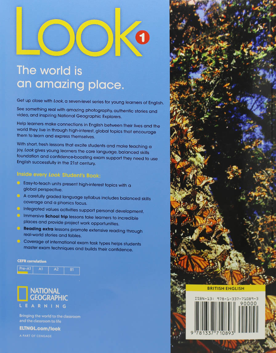 Get up close with Look, a seven-level series for young learners of English. See something real with amazing photography, authentic stories and video, and inspiring National Geographic Explorers. Help learners make connections in English between their lives and the world they live in through high-interest, global topics that encourage them to learn and express themselves. With short, fresh lessons that excite students and make teaching a joy, Look gives young learners the core language, balanced skills foundation and confidence-boosting exam support they need to use English successfully in the 21st century. Easy-to-teach units present high-interest topics with a global perspective Carefully graded language syllabus with balanced skills coverage and a phonics focus Integrated values activities support personal development Immersive School trip lessons take learners to incredible places and provide project work opportunities Reading extra lessons promote extensive reading through real-world stories and fables Coverage of international exam task types helps students master exam techniques and builds their confidence