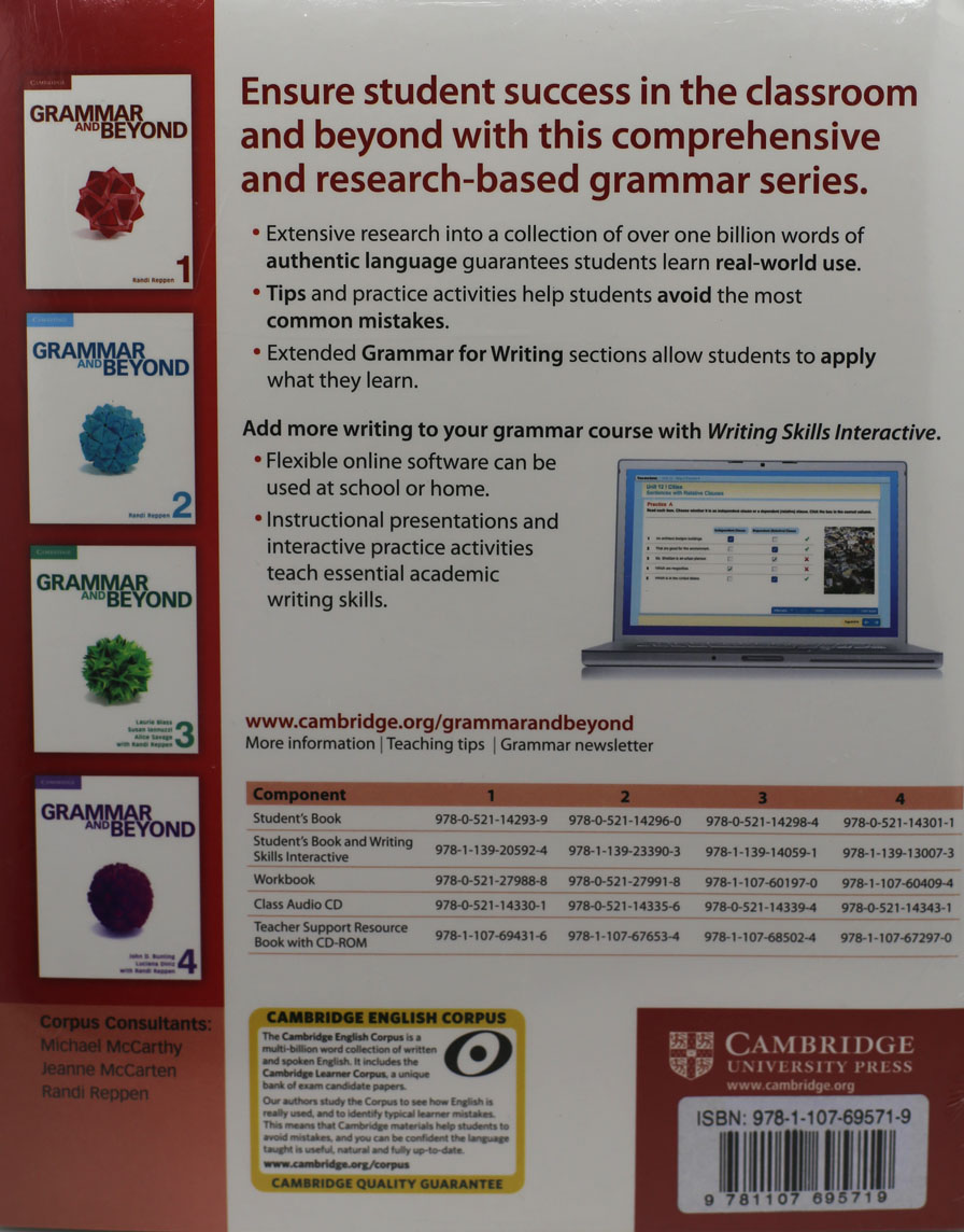 Based on extensive research, Grammar and Beyond ensures that students study accurate information about grammar and apply it in their own speech and writing. This package includes the Student's Book, Level 1, and Writing Skills Interactive, Level 1. In the Student's Book, learners study the grammar in a realistic text and through corpus-informed charts and notes. The exercises provide practice in reading, writing, listening, and speaking. Students learn to avoid common mistakes and to apply the grammar in academic writing. Writing Skills Interactive is an online course providing instruction and practice in academic writing skills and academic vocabulary. Animated presentations of the writing skills lead to automatically graded practice. Each unit closes with a quiz, which allows students to assess their progress.