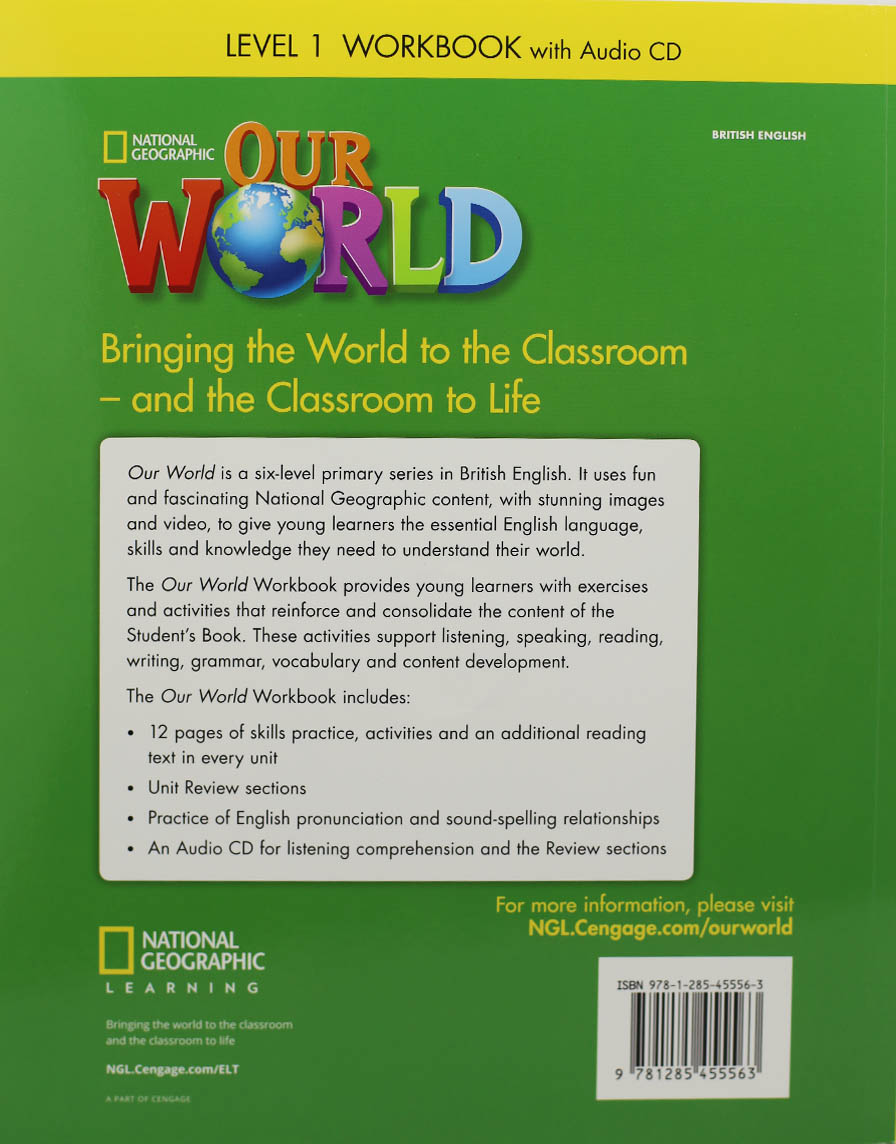 Our World is a balanced four-skills series with age-appropriate National Geographic content that motivates and excites young learners of English and helps them use English as a tool to learn about and interact with the world. Perfect for the content-rich classroom, Our World has everything students need for a balanced, four-skills curriculum, key grammar instruction, and important 21st century skills practice and cross-curricular exposure. - National Geographic video inspires and motivates young learners - Our World Readers encourage reading for fun, and bring storytelling into your classroom - Grammar support is flexible and varied with instruction and practice through the Workbooks, Grammar Workbooks, videos, and Lesson Planners - Free online activities and support are available for teachers and learners at myNGconnect.com and through the Our World Student App