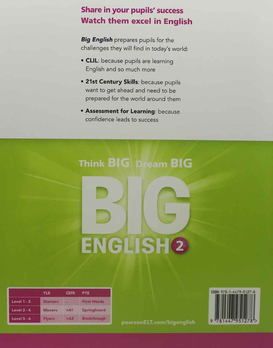 Share in your students' success. Watch them excel in English. BIG ENGLISH prepares students for the challenges they will find in today's world: CLIL: because students are learning English and so much more 21st Century Skills: because students want to get ahead and need to be prepared for the world around them Assessment for Learning: because confidence leads to success Think Big! Dream Big! BIG ENGLISH!