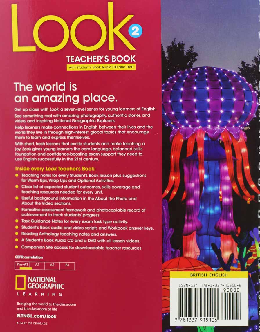 Get up close with Look, a seven-level series for young learners of English. See something real with amazing photography, authentic stories and video, and inspiring National Geographic Explorers. Help learners make connections in English between their lives and the world they live in through high-interest, global topics that encourage them to learn and express themselves. With short, fresh lessons that excite students and make teaching a joy, Look gives young learners the core language, balanced skills foundation and confidence-boosting exam support they need to use English successfully in the 21st century. Easy-to-teach units present high-interest topics with a global perspective Carefully graded language syllabus with balanced skills coverage and a phonics focus Integrated values activities support personal development Immersive School trip lessons take learners to incredible places and provide project work opportunities Reading extra lessons promote extensive reading through real-world stories and fables Coverage of international exam task types helps students master exam techniques and builds their confidence