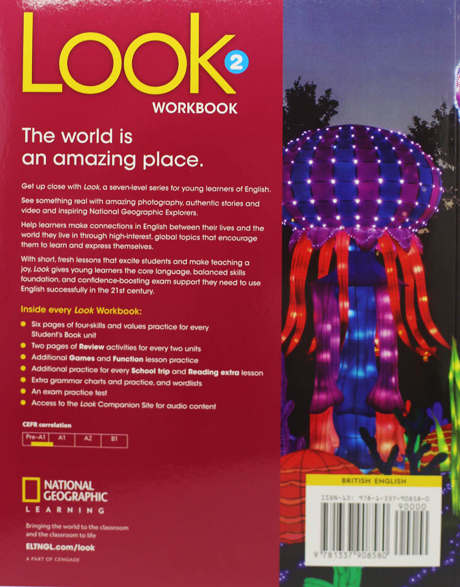 Get up close with Look, a seven-level series for young learners of English. See something real with amazing photography, authentic stories and video, and inspiring National Geographic Explorers. Help learners make connections in English between their lives and the world they live in through high-interest, global topics that encourage them to learn and express themselves. With short, fresh lessons that excite students and make teaching a joy, Look gives young learners the core language, balanced skills foundation and confidence-boosting exam support they need to use English successfully in the 21st century. Easy-to-teach units present high-interest topics with a global perspective Carefully graded language syllabus with balanced skills coverage and a phonics focus Integrated values activities support personal development Immersive School trip lessons take learners to incredible places and provide project work opportunities Reading extra lessons promote extensive reading through real-world stories and fables Coverage of international exam task types helps students master exam techniques and builds their confidence