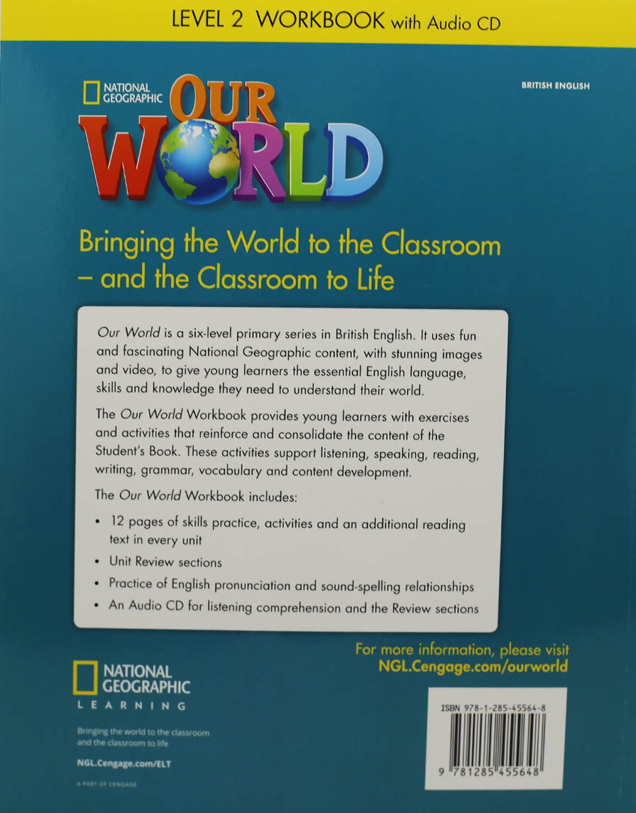 Our World is a balanced four-skills series with age-appropriate National Geographic content that motivates and excites young learners of English and helps them use English as a tool to learn about and interact with the world. Perfect for the content-rich classroom, Our World has everything students need for a balanced, four-skills curriculum, key grammar instruction, and important 21st century skills practice and cross-curricular exposure. - National Geographic video inspires and motivates young learners - Our World Readers encourage reading for fun, and bring storytelling into your classroom - Grammar support is flexible and varied with instruction and practice through the Workbooks, Grammar Workbooks, videos, and Lesson Planners - Free online activities and support are available for teachers and learners at myNGconnect.com and through the Our World Student App