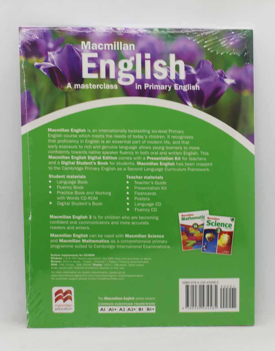 Macmillan English is the first International English coursebook to be informed by English lessons in native speaker classrooms. It is designed for second language learners of English but uses many of the approaches to reading, writing and speaking that underpin the teaching of English to first language children. In the early levels, the course does not assume a first language child's experience of spoken English or culture. Language structures are introduced and practised to give a firm grounding in grammar, but from the start, the exposure to new language is more extensive than in traditional second language courses. As children move up through the course, they experience more first language teaching methods. At the upper levels children cover the same aspects of English as do first language learners, though the needs of second language learners are always taken into account. Each level of the course is delivered through eighteen units. Each unit has six lessons requiring a minimum of seven teaching sessions.