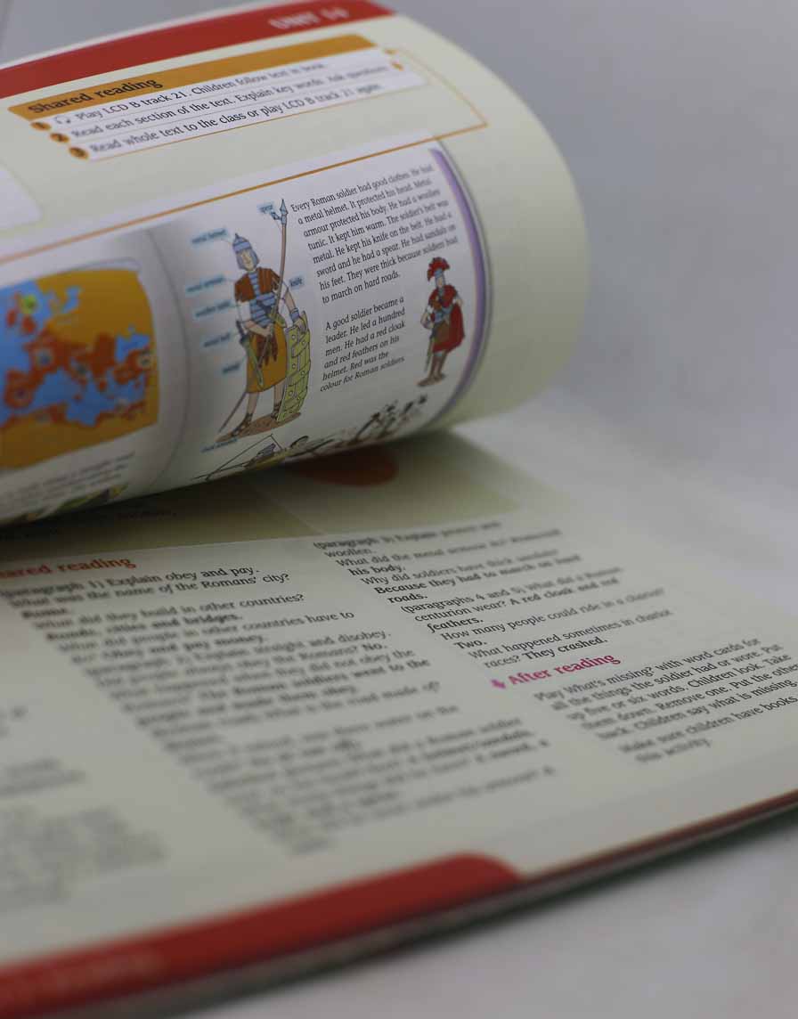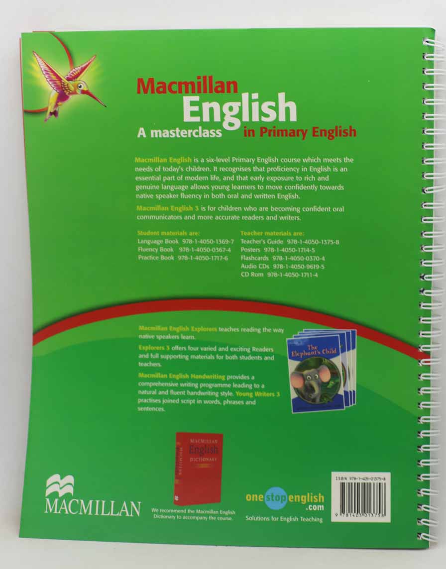 The Macmillan English Teacher's Guide contains two pages of notes for each lesson to assist the teacher, supporting the classroom use of the Language Book, Practice Book and Fluency Book. Key aims and targets are clearly identified for each lesson.