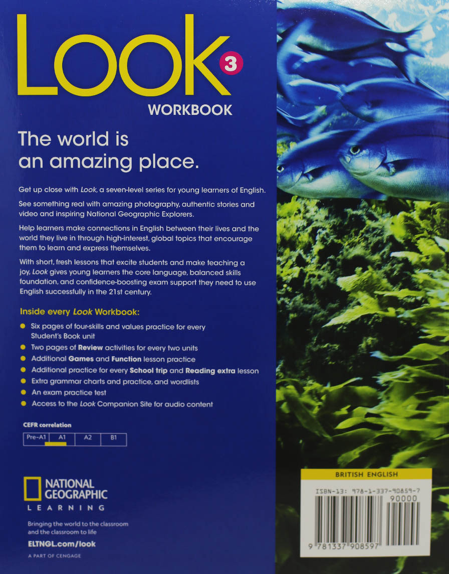 Get up close with Look, a seven-level series for young learners of English. See something real with amazing photography, authentic stories and video, and inspiring National Geographic Explorers. Help learners make connections in English between their lives and the world they live in through high-interest, global topics that encourage them to learn and express themselves. With short, fresh lessons that excite students and make teaching a joy, Look gives young learners the core language, balanced skills foundation and confidence-boosting exam support they need to use English successfully in the 21st century. Easy-to-teach units present high-interest topics with a global perspective Carefully graded language syllabus with balanced skills coverage and a phonics focus Integrated values activities support personal development Immersive School trip lessons take learners to incredible places and provide project work opportunities Reading extra lessons promote extensive reading through real-world stories and fables Coverage of international exam task types helps students master exam techniques and builds their confidence