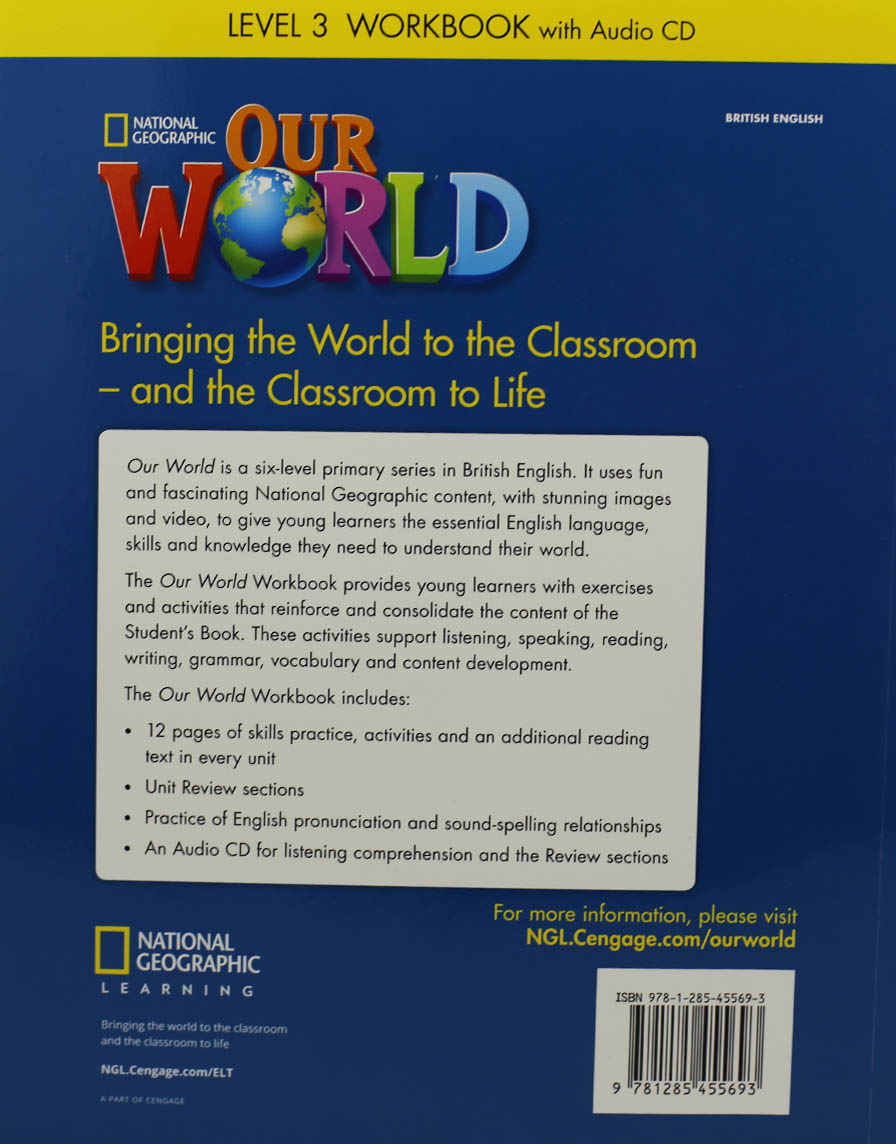 Our World is a balanced four-skills series with age-appropriate National Geographic content that motivates and excites young learners of English and helps them use English as a tool to learn about and interact with the world. Perfect for the content-rich classroom, Our World has everything students need for a balanced, four-skills curriculum, key grammar instruction, and important 21st century skills practice and cross-curricular exposure. - National Geographic video inspires and motivates young learners - Our World Readers encourage reading for fun, and bring storytelling into your classroom - Grammar support is flexible and varied with instruction and practice through the Workbooks, Grammar Workbooks, videos, and Lesson Planners - Free online activities and support are available for teachers and learners at myNGconnect.com and through the Our World Student App