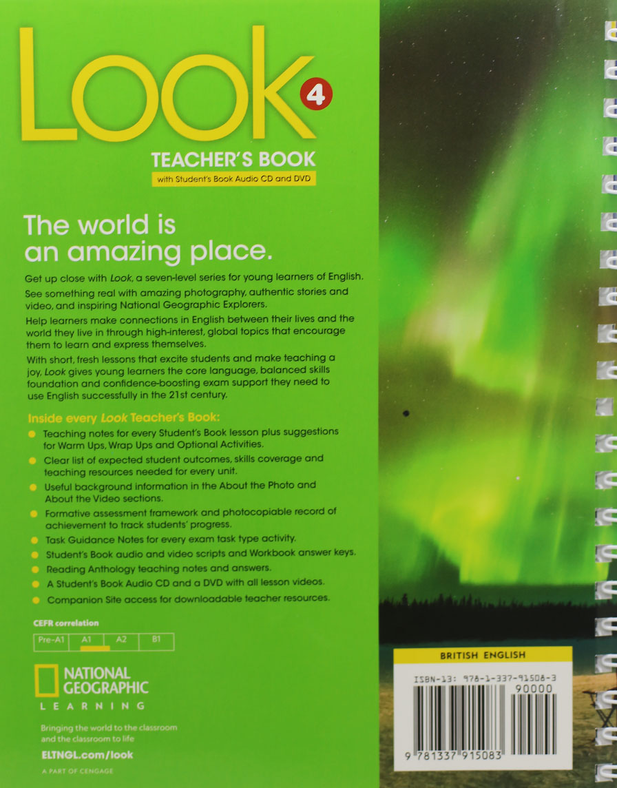 Read MoreGet up close with Look, a seven-level series for young learners of English. See something real with amazing photography, authentic stories and video, and inspiring National Geographic Explorers. Help learners make connections in English between their lives and the world they live in through high-interest, global topics that encourage them to learn and express themselves. With short, fresh lessons that excite students and make teaching a joy, Look gives young learners the core language, balanced skills foundation and confidence-boosting exam support they need to use English successfully in the 21st century. Easy-to-teach units present high-interest topics with a global perspective Carefully graded language syllabus with balanced skills coverage and a phonics focus Integrated values activities support personal development Immersive School trip lessons take learners to incredible places and provide project work opportunities Reading extra lessons promote extensive reading through real-world stories and fables Coverage of international exam task types helps students master exam techniques and builds their confidence