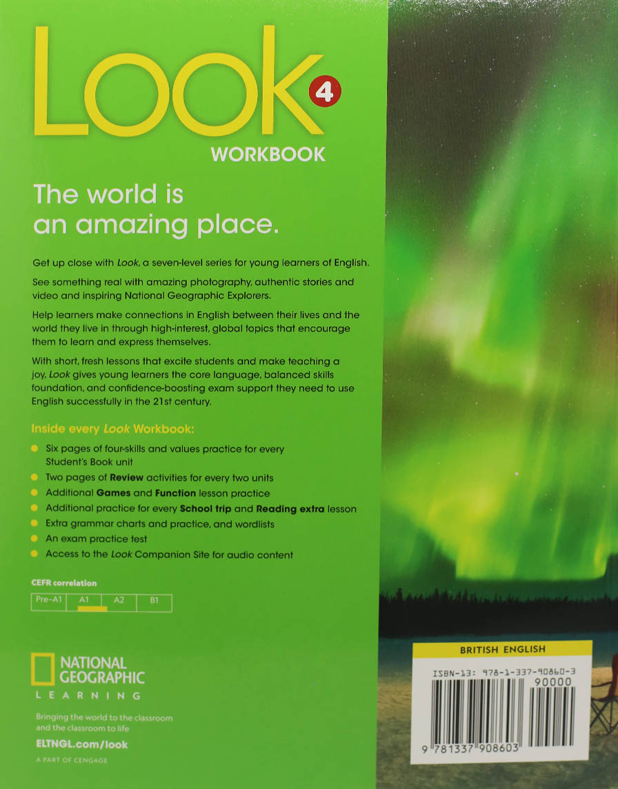 Read MoreGet up close with Look, a seven-level series for young learners of English. See something real with amazing photography, authentic stories and video, and inspiring National Geographic Explorers. Help learners make connections in English between their lives and the world they live in through high-interest, global topics that encourage them to learn and express themselves. With short, fresh lessons that excite students and make teaching a joy, Look gives young learners the core language, balanced skills foundation and confidence-boosting exam support they need to use English successfully in the 21st century. Easy-to-teach units present high-interest topics with a global perspective Carefully graded language syllabus with balanced skills coverage and a phonics focus Integrated values activities support personal development Immersive School trip lessons take learners to incredible places and provide project work opportunities Reading extra lessons promote extensive reading through real-world stories and fables Coverage of international exam task types helps students master exam techniques and builds their confidence