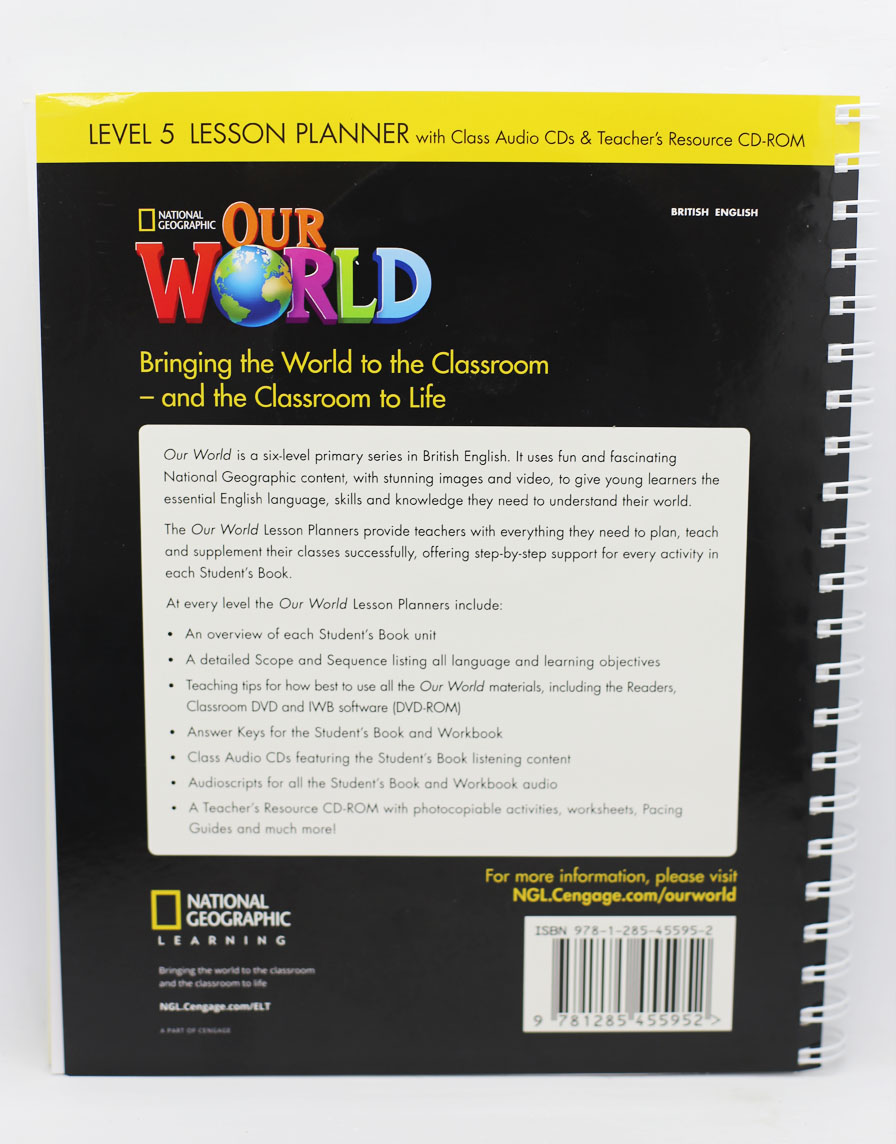 Our World is a balanced four-skills series with age-appropriate National Geographic content that motivates and excites young learners of English and helps them use English as a tool to learn about and interact with the world. Perfect for the content-rich classroom, Our World has everything students need for a balanced, four-skills curriculum, key grammar instruction, and important 21st century skills practice and cross-curricular exposure. - National Geographic video inspires and motivates young learners - Our World Readers encourage reading for fun, and bring storytelling into your classroom - Grammar support is flexible and varied with instruction and practice through the Workbooks, Grammar Workbooks, videos, and Lesson Planners - Free online activities and support are available for teachers and learners at myNGconnect.com and through the Our World Student App