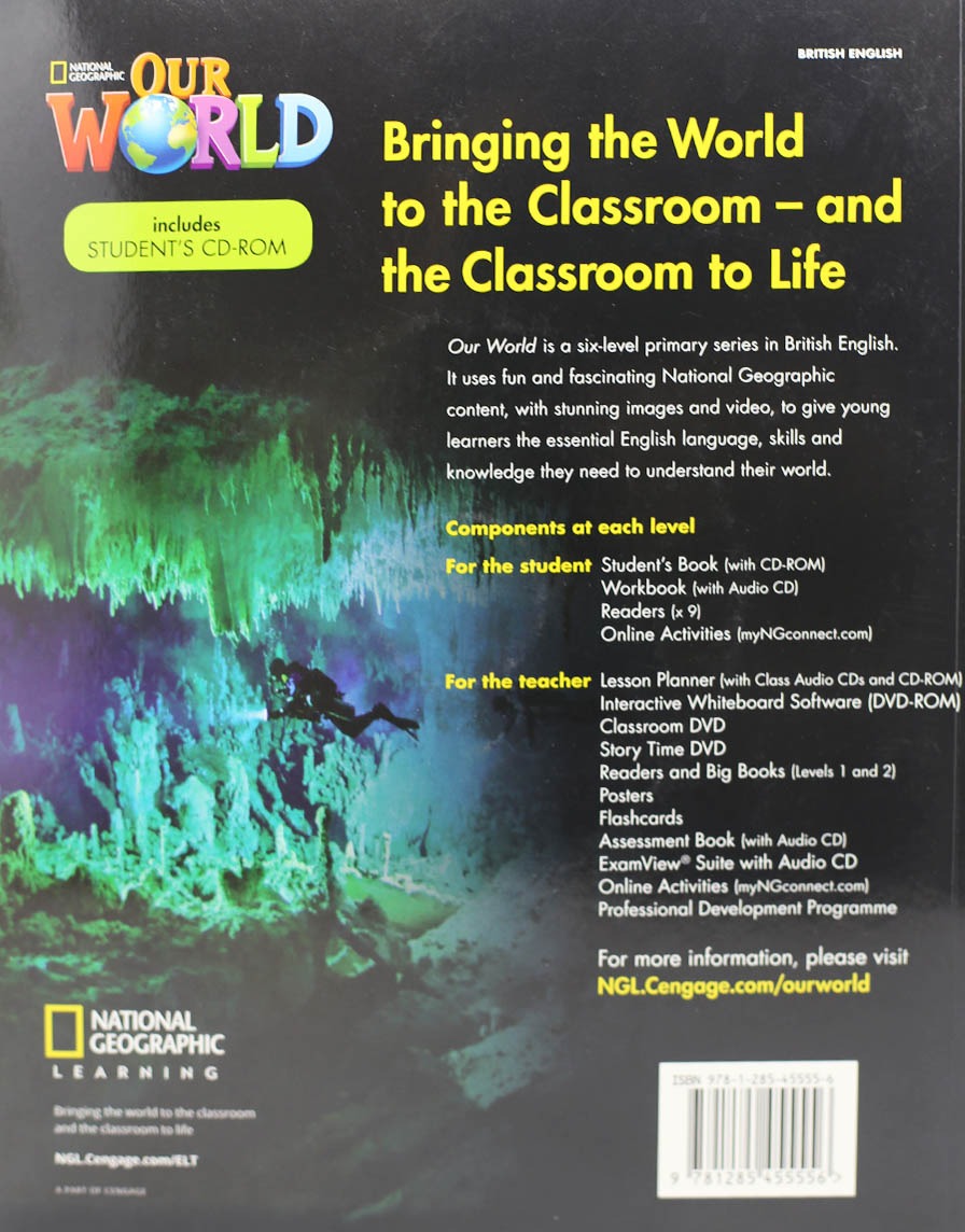 Our World is a balanced four-skills series with age-appropriate National Geographic content that motivates and excites young learners of English and helps them use English as a tool to learn about and interact with the world. Perfect for the content-rich classroom, Our World has everything students need for a balanced, four-skills curriculum, key grammar instruction, and important 21st century skills practice and cross-curricular exposure. - National Geographic video inspires and motivates young learners - Our World Readers encourage reading for fun, and bring storytelling into your classroom - Grammar support is flexible and varied with instruction and practice through the Workbooks, Grammar Workbooks, videos, and Lesson Planners - Free online activities and support are available for teachers and learners at myNGconnect.com and through the Our World Student App