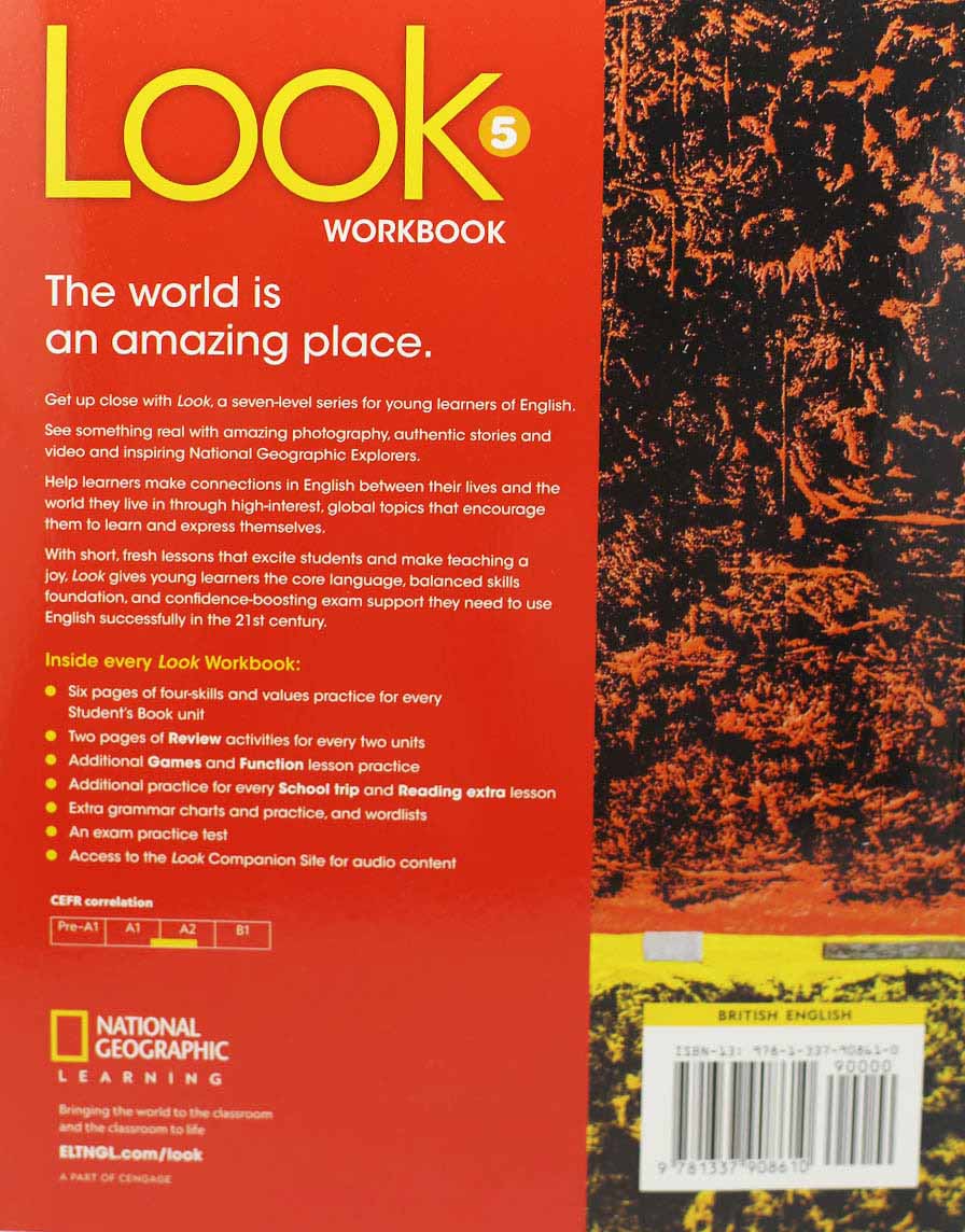 Get up close with Look, a seven-level series for young learners of English. See something real with amazing photography, authentic stories and video, and inspiring National Geographic Explorers. Help learners make connections in English between their lives and the world they live in through high-interest, global topics that encourage them to learn and express themselves. With short, fresh lessons that excite students and make teaching a joy, Look gives young learners the core language, balanced skills foundation and confidence-boosting exam support they need to use English successfully in the 21st century. Easy-to-teach units present high-interest topics with a global perspective Carefully graded language syllabus with balanced skills coverage and a phonics focus Integrated values activities support personal development Immersive School trip lessons take learners to incredible places and provide project work opportunities Reading extra lessons promote extensive reading through real-world stories and fables Coverage of international exam task types helps students master exam techniques and builds their confidence