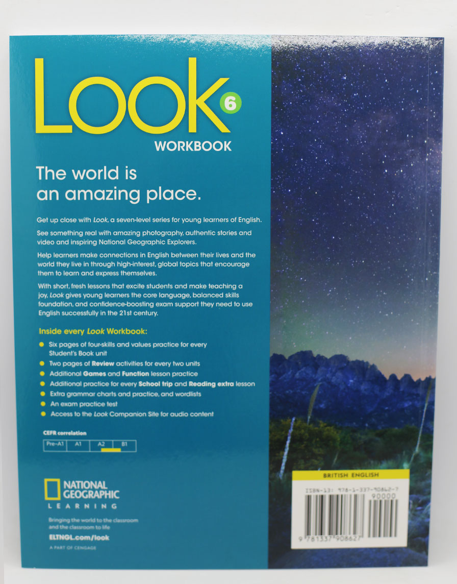 Get up close with Look, a seven-level series for young learners of English. See something real with amazing photography, authentic stories and video, and inspiring National Geographic Explorers. Help learners make connections in English between their lives and the world they live in through high-interest, global topics that encourage them to learn and express themselves. With short, fresh lessons that excite students and make teaching a joy, Look gives young learners the core language, balanced skills foundation and confidence-boosting exam support they need to use English successfully in the 21st century. Easy-to-teach units present high-interest topics with a global perspective Carefully graded language syllabus with balanced skills coverage and a phonics focus Integrated values activities support personal development Immersive School trip lessons take learners to incredible places and provide project work opportunities Reading extra lessons promote extensive reading through real-world stories and fables Coverage of international exam task types helps students master exam techniques and builds their confidence