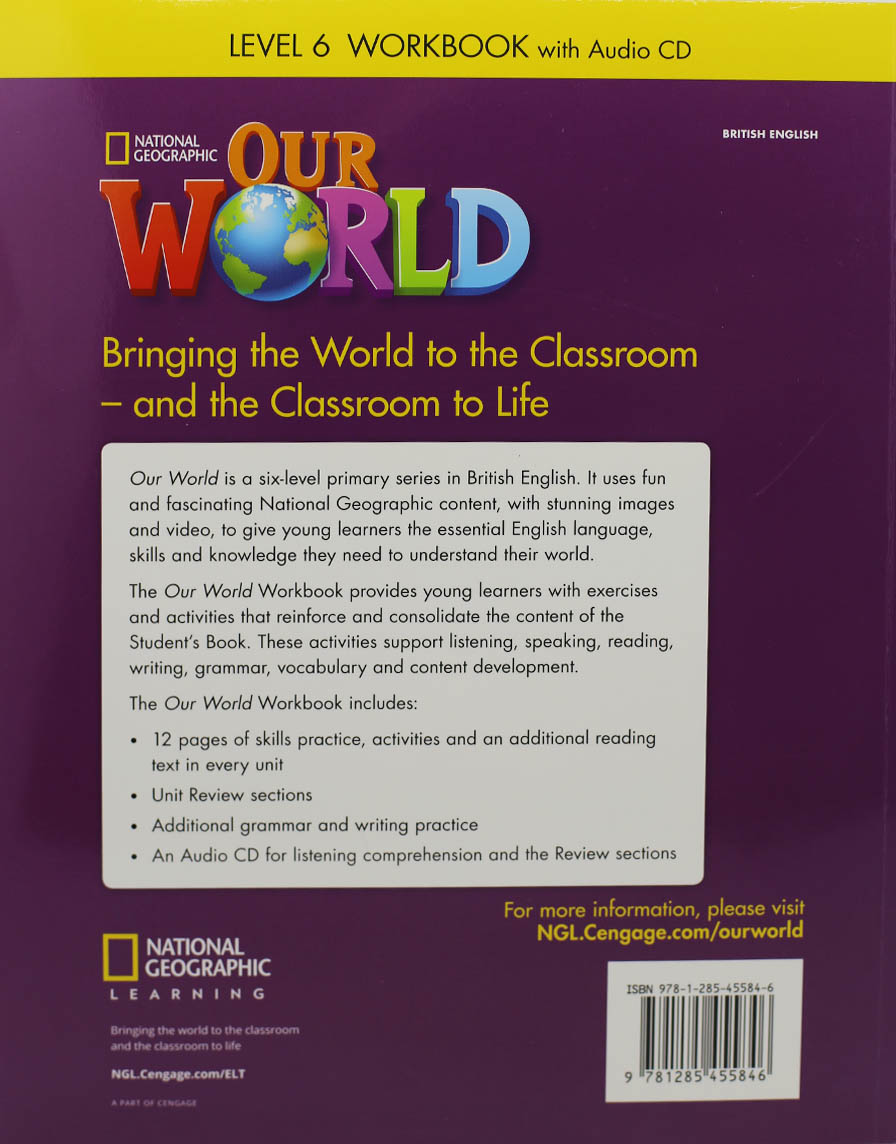 Our World is a balanced four-skills series with age-appropriate National Geographic content that motivates and excites young learners of English and helps them use English as a tool to learn about and interact with the world. Perfect for the content-rich classroom, Our World has everything students need for a balanced, four-skills curriculum, key grammar instruction, and important 21st century skills practice and cross-curricular exposure. - National Geographic video inspires and motivates young learners - Our World Readers encourage reading for fun, and bring storytelling into your classroom - Grammar support is flexible and varied with instruction and practice through the Workbooks, Grammar Workbooks, videos, and Lesson Planners - Free online activities and support are available for teachers and learners at myNGconnect.com and through the Our World Student App