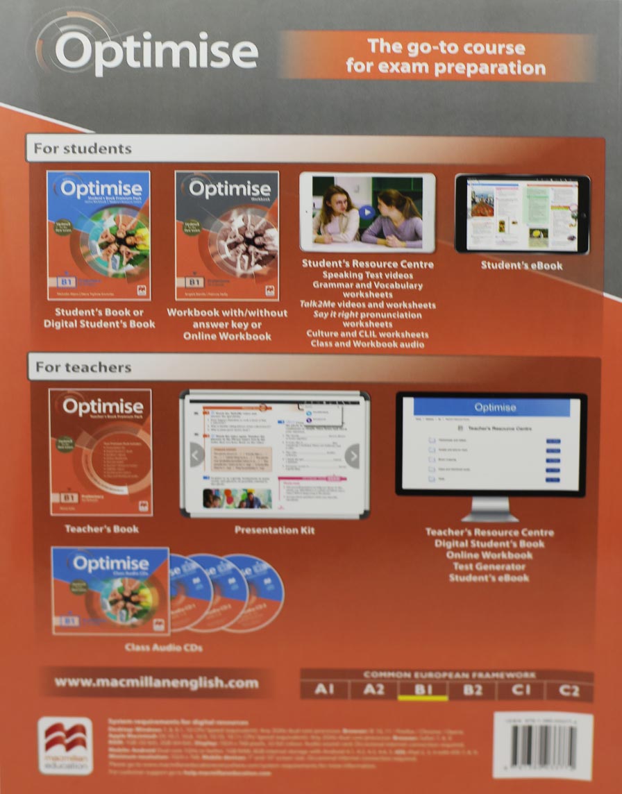 The Workbook (Without Answer Key) provides further opportunities to revisit and consolidate the vocabulary, structures and skills students have already encountered in each unit. At the end of every Workbook unit, there is a Progress check. At the end of the Workbook, there is a full Optimise Practice test based on the Cambridge for Schools exam.