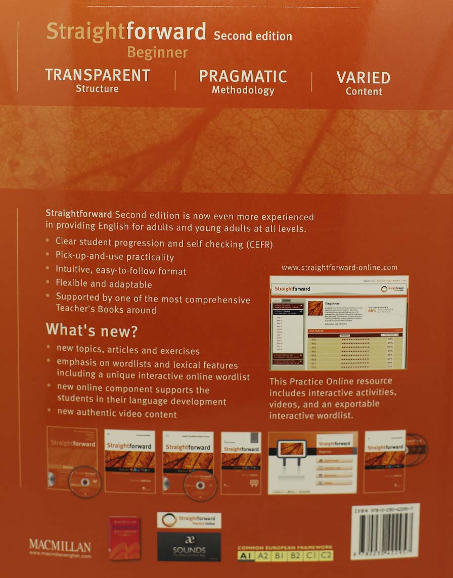 Straightforward Second edition is now even more experienced in providing English for adults and young adults at all levels. Clear student progression and self checking (CEFR) Pick-up-and-use practicality Intuitive, easy-to-follow format Flexible and adaptable Supported by one of the most comprehensive Teacher's Books around What's new? New topics, articles and exercises Emphasis on wordlists and lexical features including a unique interactive online wordlist New online component supports the students in their language development New authentic video content