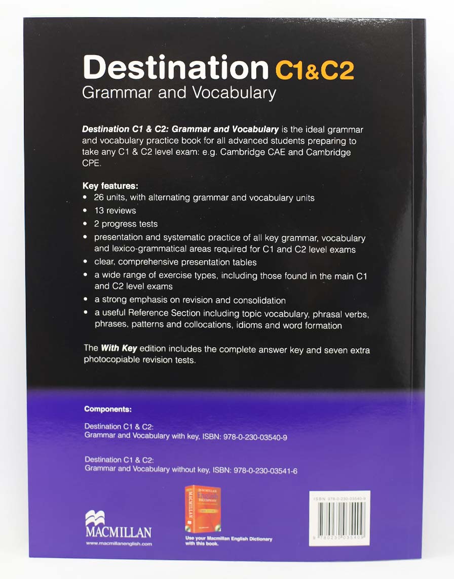 Destination Grammar is the ideal grammar and vocabulary practice book for all students preparing to take any C1 and C2 level exam. There are 26 units within the book with alternating grammar and vocabulary units that cover a wide range of exercise that help to prepare students for the Cambridge CAE. This is a With Key edition.