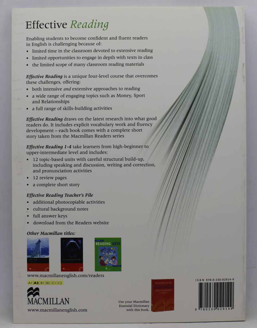 The Effective Reading Student's Book contains 12 topic-based units that build on the latest research into what makes a good reader. It includes specific vocabulary work and fluency development and each level comes with a complete short story from the Macmillan Readers series.