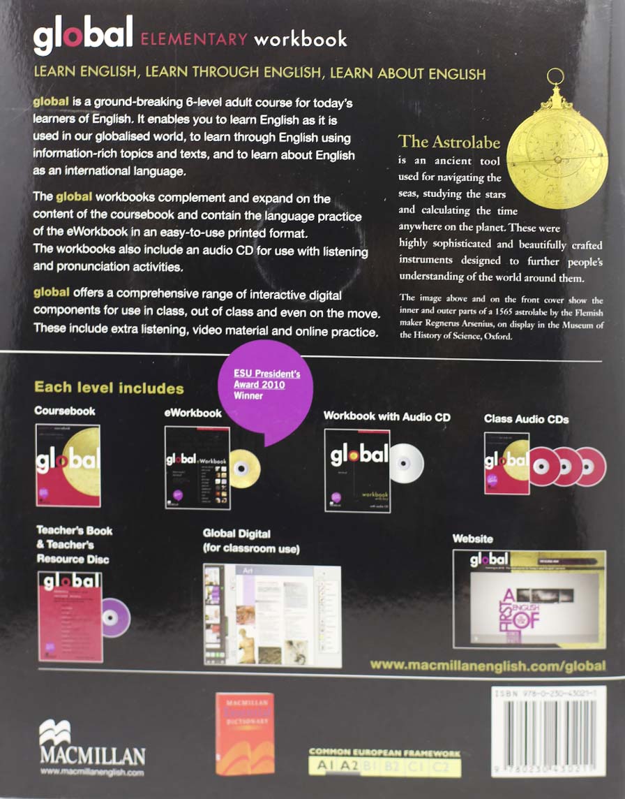 The Global Workbook complements and expands on the content of the Coursebook. It presents the language practice activities of the eWorkbook in an easy-to-use printed format. It also includes an Audio CD for use with the listening and pronunciation activities, along with an included answer key for the Workbook exercises.