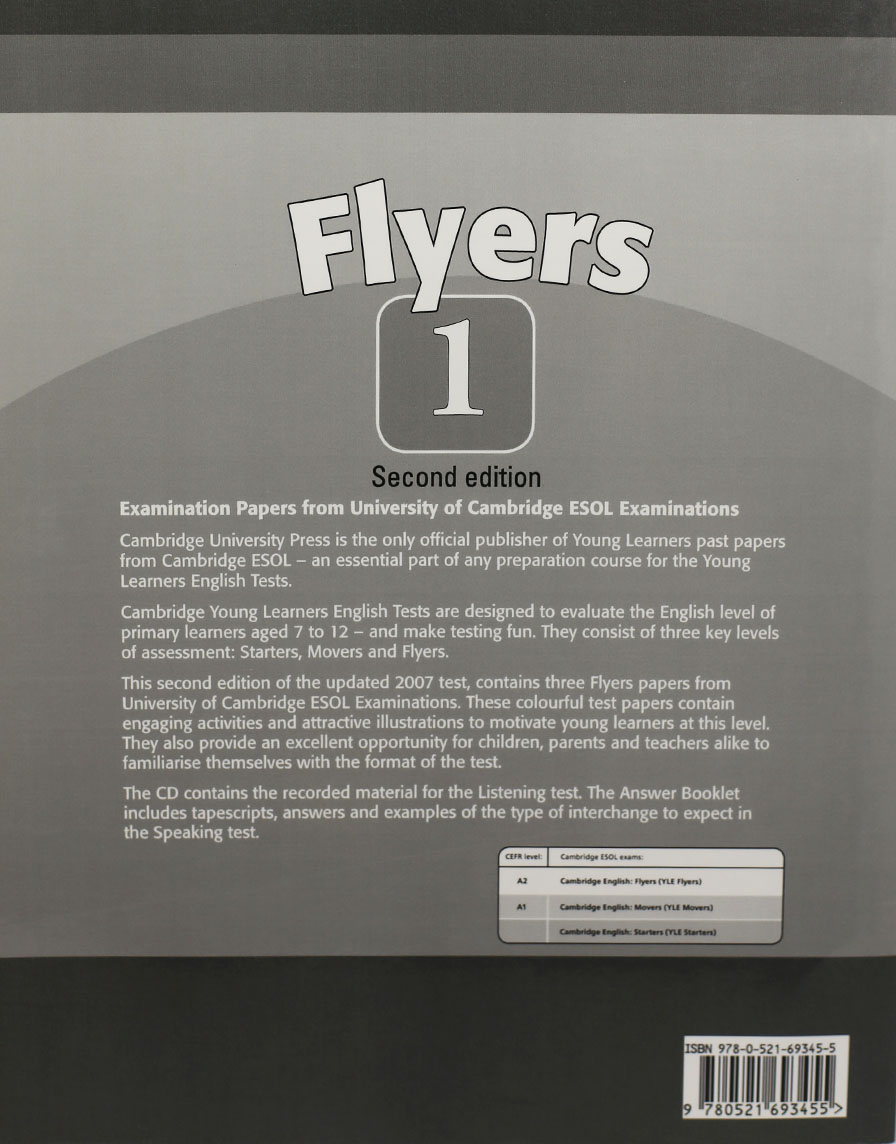 The Answer Booklet accompanies Cambridge Young Learners English Tests 1 Flyers Student's Book and Audio CD. The Answer Booklet contains answers for all three Flyers tests, the tapescripts and examples of the type of interchange to expect in the Speaking test. It also includes the Cambridge English: Flyers Vocabulary list, organised by theme. The Flyers Audio CD (which contains the listening sections of the tests) and the Flyers Student's Book are available separately.