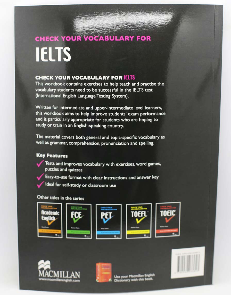 This workbook features a range of activities to help students learn and revise vocabulary for the IELTS exam. Using exercises, word games, puzzles and quizzes, the book covers both general and topic-specific vocabulary as well as grammar, comprehension, pronunciation and spelling.
