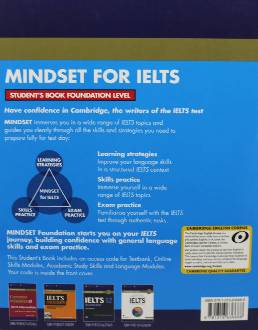 MINDSET, the multi-level course from the organisation that produces the IELTS test, develops students' English skills and leaves them fully prepared for test day. MINDSET from Cambridge gets you inside the IELTS test with a unique blend of print and online content. Topic-based units organised by skill make it easy to find what you want. Designed for students currently at level A2, this Student's Book Foundation starts you on your IELTS journey with activities to help you develop your English skills and understand how the IELTS test works. Online content includes skills modules, Corpus informed language specific modules and access to authentic online practice tests in Testbank. *Access code printed on the inside front cover.