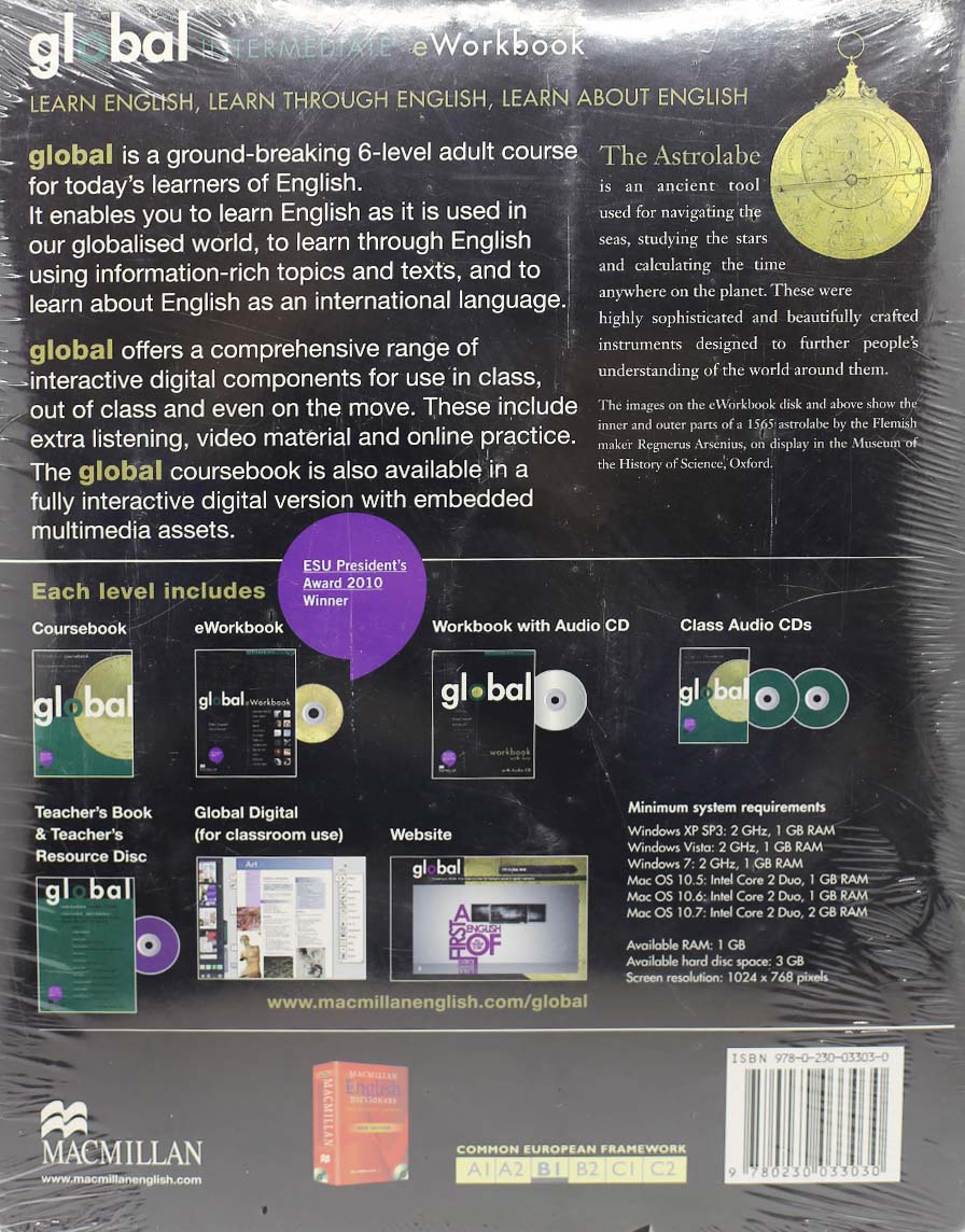 Global' is a new six-level general English course for adult learners. It is an information-rich course, sophisticated in both presentation and approach. It has international appeal, combining challenging content, intelligent topics and cross-cultural awareness. It features none of the celebrity-driven lifestyle content often found in typical general English courses for adults. The Global approach is fully aware of the needs of today's learners, and places an emphasis on effective communication in English between both native and non-native speakers. 'Global' helps users to learn English, to learn about English and to learn through English, and is the ideal course for students who want to communicate in a global environnment.