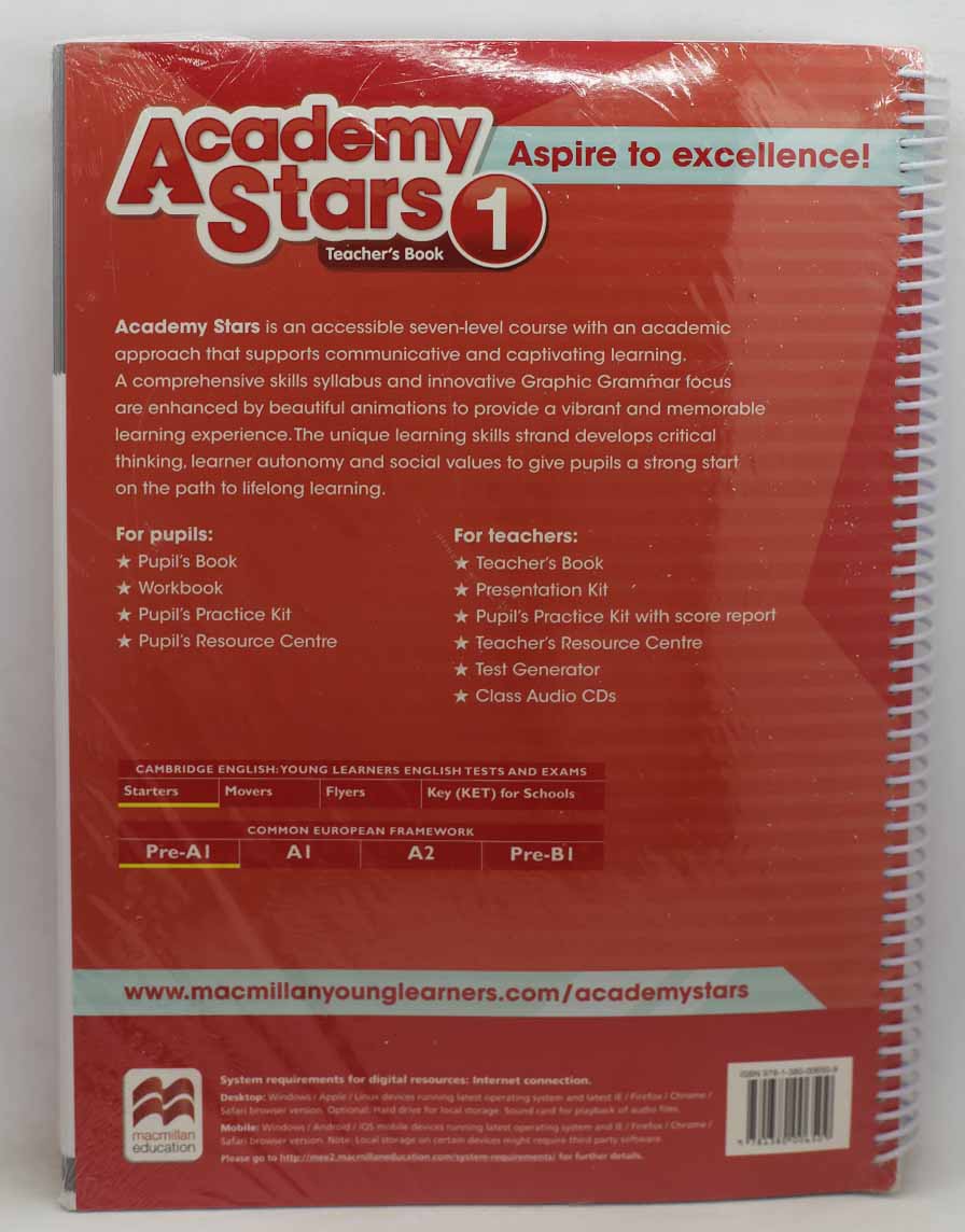 The Teacher's Book Pack provides multiple tools to support the teaching of Academy Stars. In the pack is the Teacher's Book and access code for the Presentation Kit, Teacher's Resource Centre, Test Generator and Pupil's Practice Kit with Gradebook.