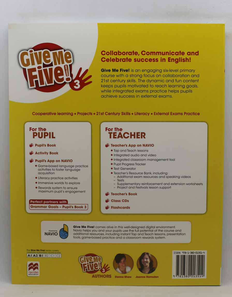 Give Me Five! Pupil's Book Pack provides tools to engage children in learning key 21st century and collaboration skills. Each pack consists of a pupil's book including codes to access the student world experience in the new Navio blended learning platform.
