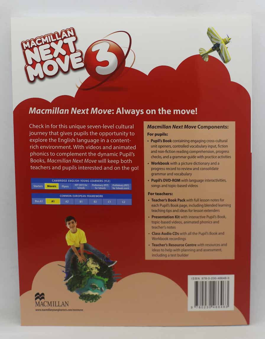 Macmillan Next Move British English Workbooks provide substantial support for the Pupil's Book and enable learners to develop their language skills both in the classroom and at home through homework. The country topics are sustained throughout the Workbook units reinforcing the realistic contexts and cross-cultural experience.