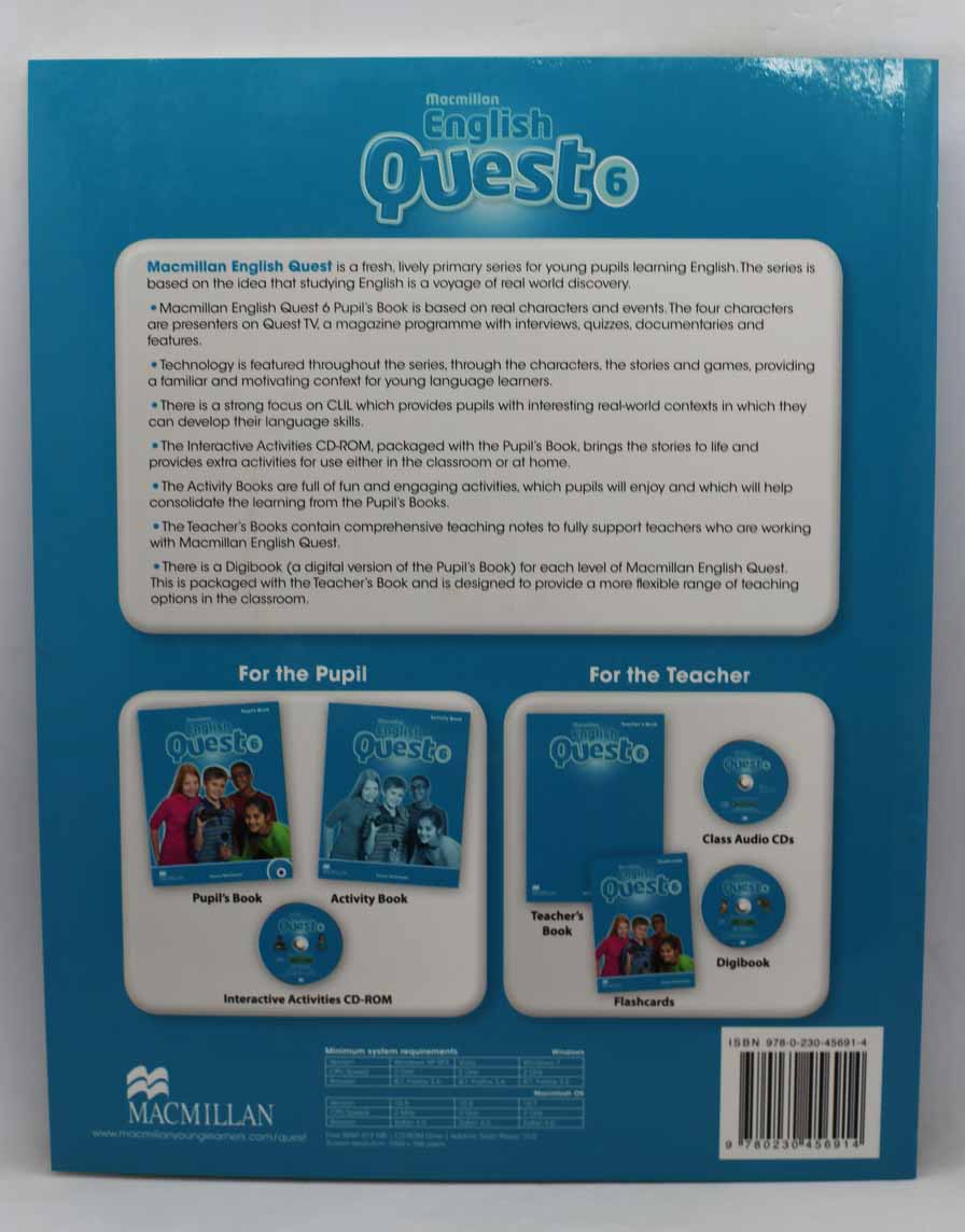 Quest is a six-level primary series first published for Spain. It is aimed at children who have little or no previous knowledge of English. The course was developed with the aim of establishing a new approach to primary courses. Therefore, the course remains story-based for Levels 1 and 2, but moves towards being content based in upper levels, with levels 5 and 6 using stories more overlty as a means of exploring content, and cultural values are much more topic based in those higher levels. The course contains a strong CLIL element right from the start and there is also a constant focus on phonics throughout the course. The course was felt suitable for adaptation to meet the needs of some international markets, but for that to be successful various fundamental changes have had to be made to Levels 1 and 2. The International version of Quest has no reading/writing requirement in Level 1 and a reduced requirement in Level 2, starting a third of the way into the book. Designed to meet the needs of markets where reading and writing at early stages is not acceptable Cohesive 6-level course with continuity between the levels Careful combination of methodologies in different levels, to best match the needs of the developing child and their changing interests and level of maturity Integrated phonics stream Comprehensive portfolio material CLIL material A good range of support components