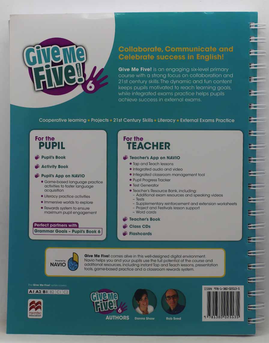 The Teacher's Book offers a variety of tools to support the teaching of Give Me Five! including access to the Navio App - here teachers are able to find Tap and Teach Lessons, integrated audio and video, Pupil Progress Tracker and the Test Generator. Additionally, the Navio App holds a range of optional extras in the Resource Bank.