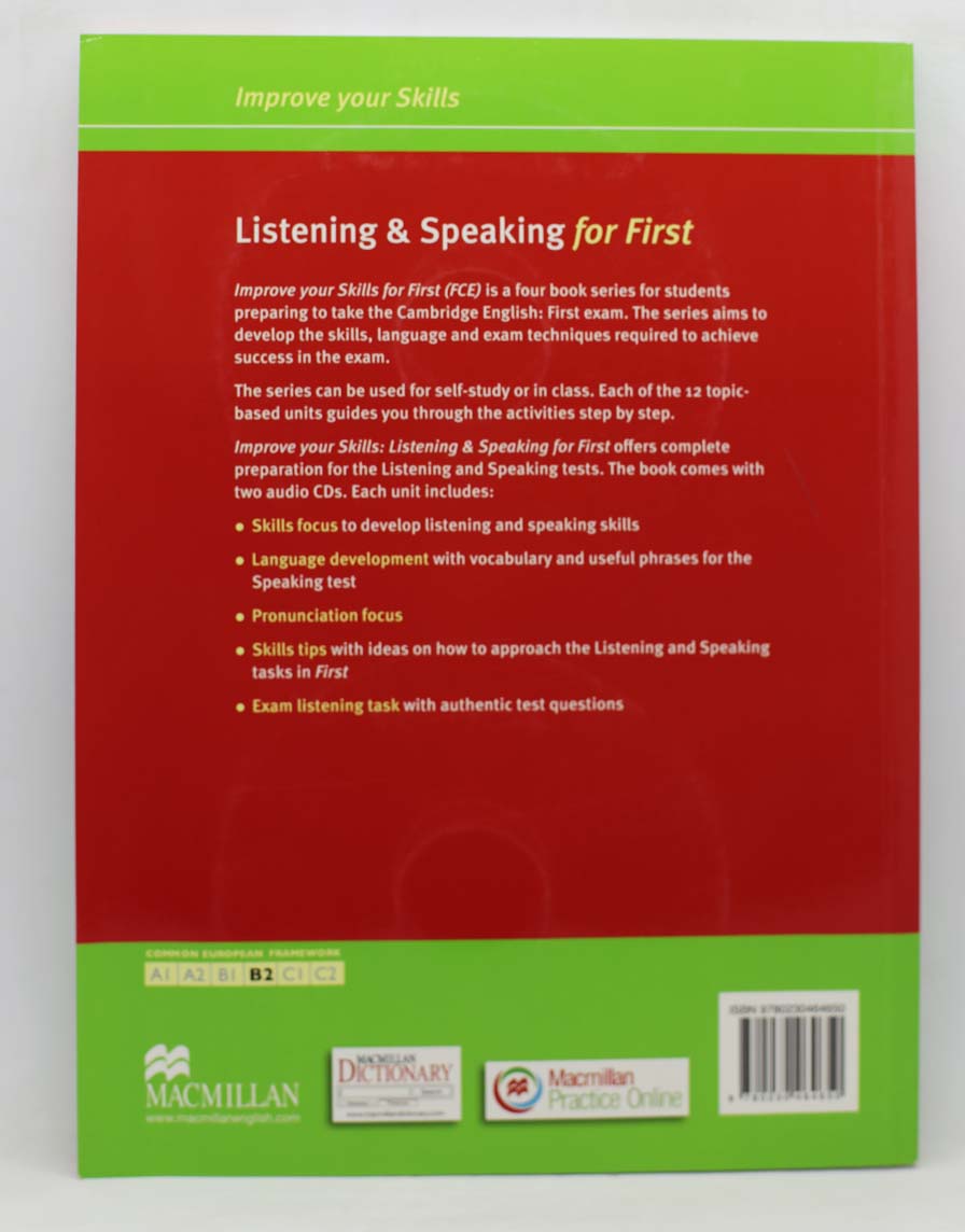 Improve your Skills: Listening and Speaking fully prepares students for First Listening and Speaking tests. The book aims to develop the skills, language and test techniques required to achieve success in the exam through pronunciation focus and exam practice. Included are two audio CDs with all the recording material. This is a 'With Key' version.