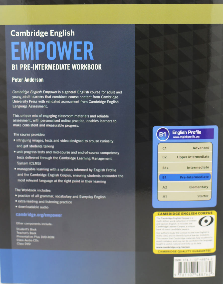 Cambridge English Empower is a general adult course that combines course content from Cambridge University Press with validated assessment from the experts at Cambridge English Language Assessment. The Pre-intermediate Workbook with downloadable audio (no answers) can be used alongside the Student's Book and offers additional consolidation activities.