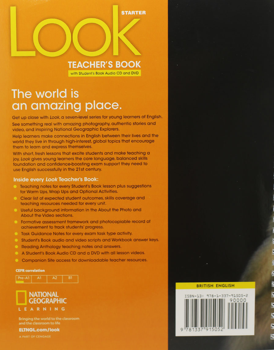 Get up close with Look, a seven-level series for young learners of English. See something real with amazing photography, authentic stories and video, and inspiring National Geographic Explorers. Help learners make connections in English between their lives and the world they live in through high-interest, global topics that encourage them to learn and express themselves. With short, fresh lessons that excite students and make teaching a joy, Look gives young learners the core language, balanced skills foundation and confidence-boosting exam support they need to use English successfully in the 21st century. Easy-to-teach units present high-interest topics with a global perspective Carefully graded language syllabus with balanced skills coverage and a phonics focus Integrated values activities support personal development Immersive School trip lessons take learners to incredible places and provide project work opportunities Reading extra lessons promote extensive reading through real-world stories and fables Coverage of international exam task types helps students master exam techniques and builds their confidence