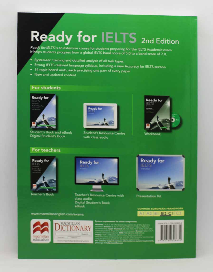Ready for IELTS 2nd Edition Student's Book without Answers Pack provides full preparation and practice for the Academic IELTS module to achieve an IELTS band of between 5.0 and 7.0. It is packaged with a code to the Student's Resource Centre with access the class audio, wordlists, further language and exam task practice for each unit.
