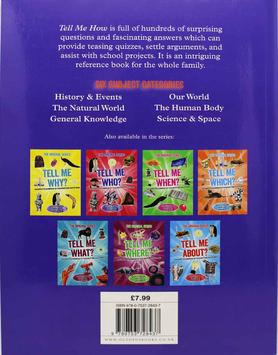 Tell Me How? is packed full of hundreds of questions and answers which will leave you desperate to find out more! This colourful reference book can help you settle arguments, provoke teasing quiz questions and even assist with school projects. It's the perfect companion to a family get together! Tell Me How: How do spiders make their webs? How did the Olympic Games begin? How big were dinosaur eggs? How does my memory work? Six facet-packed subject categories boost the general knowledge of your children and even you, helping to engage the whole family.