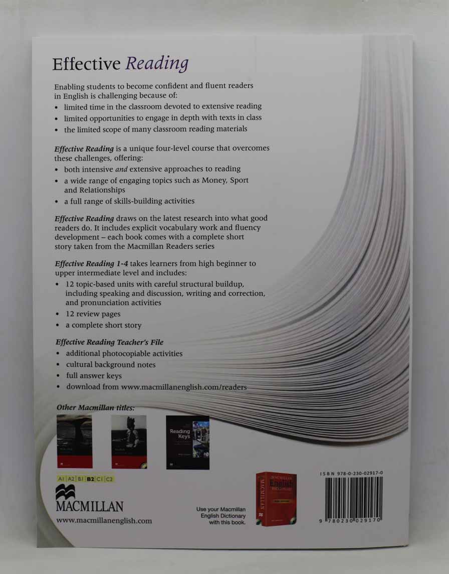 The Effective Reading Student's Book contains 12 topic-based units that build on the latest research into what makes a good reader. It includes specific vocabulary work and fluency development and each level comes with a complete short story from the Macmillan Readers series.